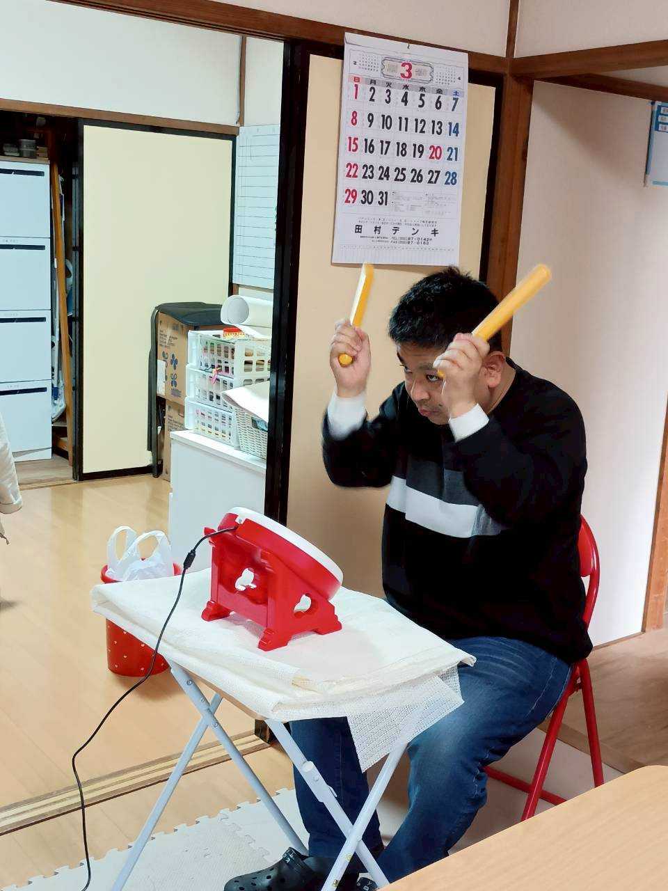午後の時間は、『太鼓の達人』をして楽しむ人、DVD鑑賞をしてゆっくり過ごす人と別れての活動でした。