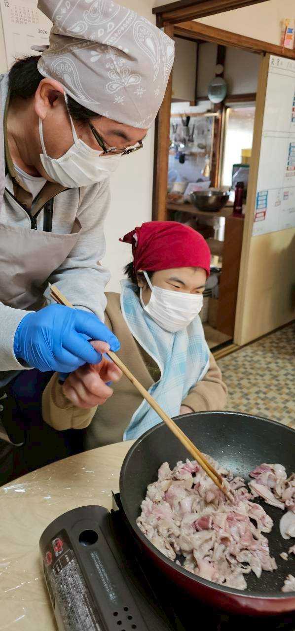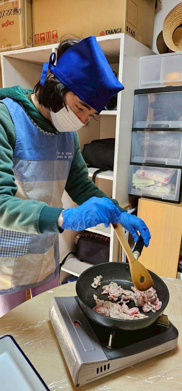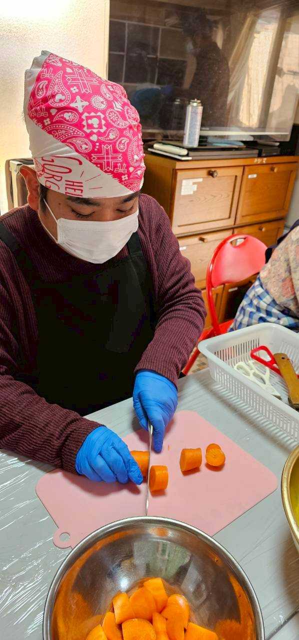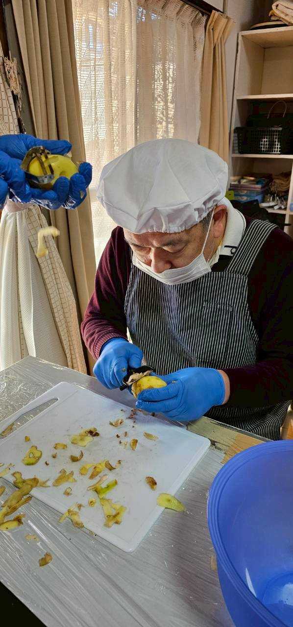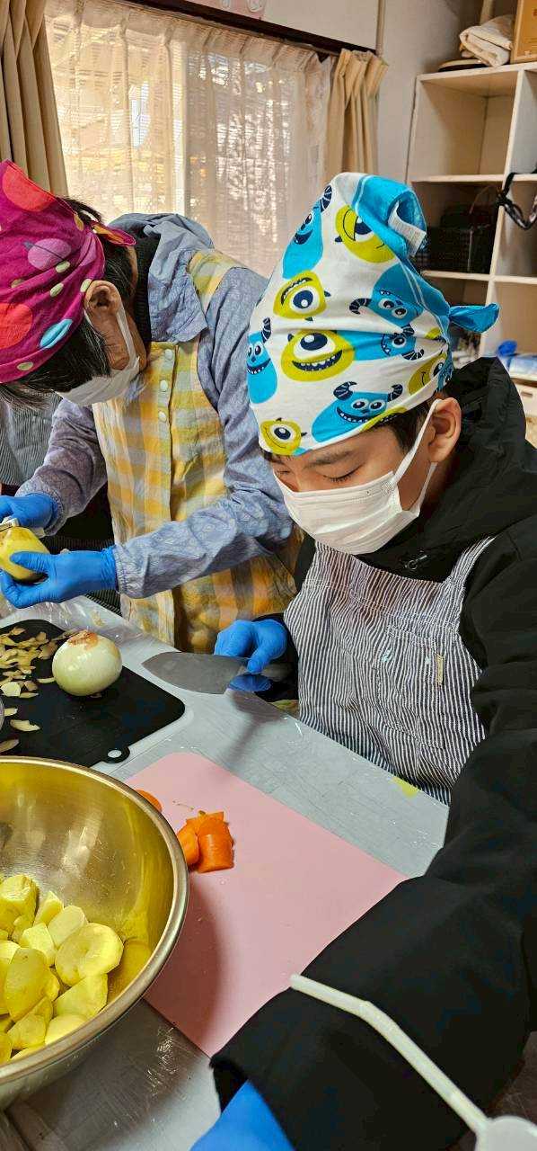 お昼のカレー作り。