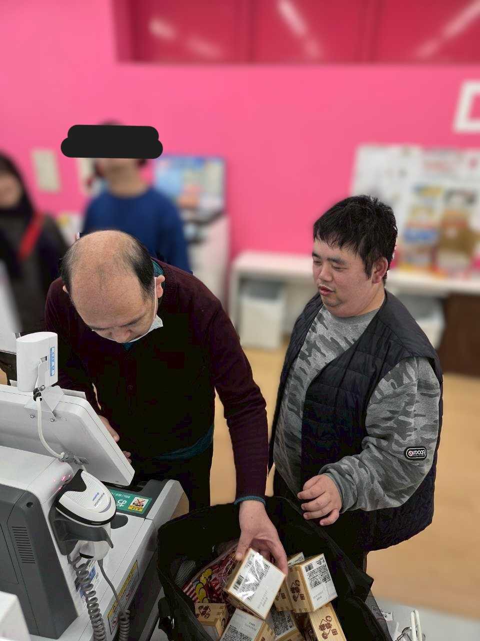 おつかい班は豆まき行事の為の買い物に出かけました。